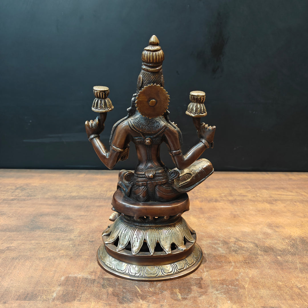 Lakshmi - This brass sculpture depicts Lakshmi, who is the Hindu goddess of wealth/money, prosperity, and fortune. Also she is the spouse of Lord Vishnu, who is believed to be the supreme savior of this universe. It is believed that worshipping goddess Lakshmi brings good luck, removes misery and poverty. Lakshmi is worshipped in Hinduism in homes and also at commercial establishments as the goddess of wealth for their success. The festival of Diwali in India sees special prayers in homes, commercial places and temples of goddess Lakshmi with Lord Ganesha. She also enjoys worship as the consort of Vishnu in many temples.