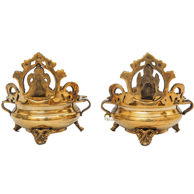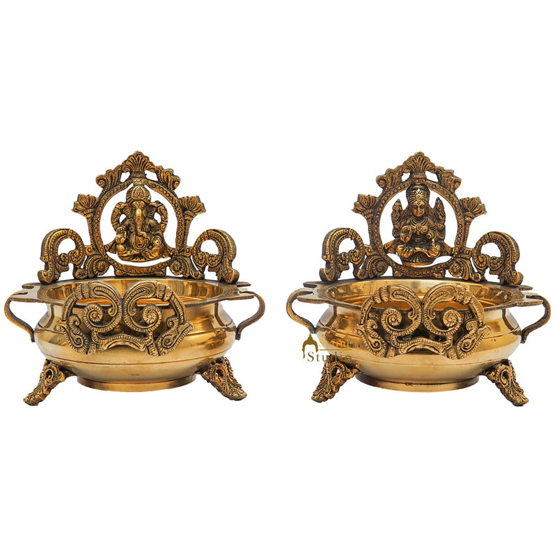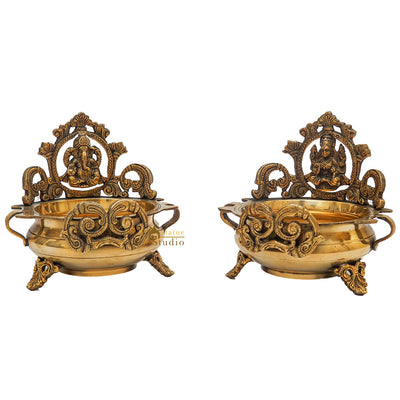 Brass Ganesha Lakshmi Urli Temple Home Décor For Diwali Puja Gift Showpiece 7"