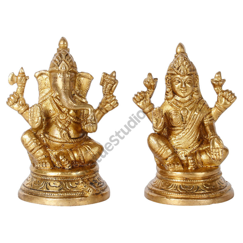 Lakshmi Ganesha – The Hindi word ‘Chaturbhuj’ means the one who has four hands. In this brass sculpture Lord Ganesha is depicted with his four hands. The upper left hand has a ‘Pharsa’ or an axe symbolizing cutting attachment bonds. The lower right hand is raised with palm facing outwards away from the body with fingers flexed. This hand gesture is called ‘Abhayamudra’ that offers protection for all from all evils. The upper right hand is shown holding a conch, ‘Shankha’ in Hindi. The sound of the conch is considered pious in Hinduism and represents the call to come and pray. The lower left hand holds a special sweet called ‘Modak or Laddoo’. It is believed that it is the favorite sweet of Lord Ganesha, also it represents the sweet result of prayers one offers and the sweetest things of all - The liberation or ‘Moksha’. Lakshmi is the Hindu goddess of wealth/money, prosperity, and fortune. Also she is the spouse of Lord Vishnu, who is believed to be the supreme savior of this universe. It is believed that worshipping goddess Lakshami brings good luck, removes misery and poverty. Lakshmi is worshipped in Hinduism in homes and also at commercial establishments as the goddess of wealth for their success. The festival of Diwali in India sees special prayers in homes, commercial places and temples of goddess Lakshmi with Lord Ganesha. She also enjoys worship as the consort of Vishnu in many temples.