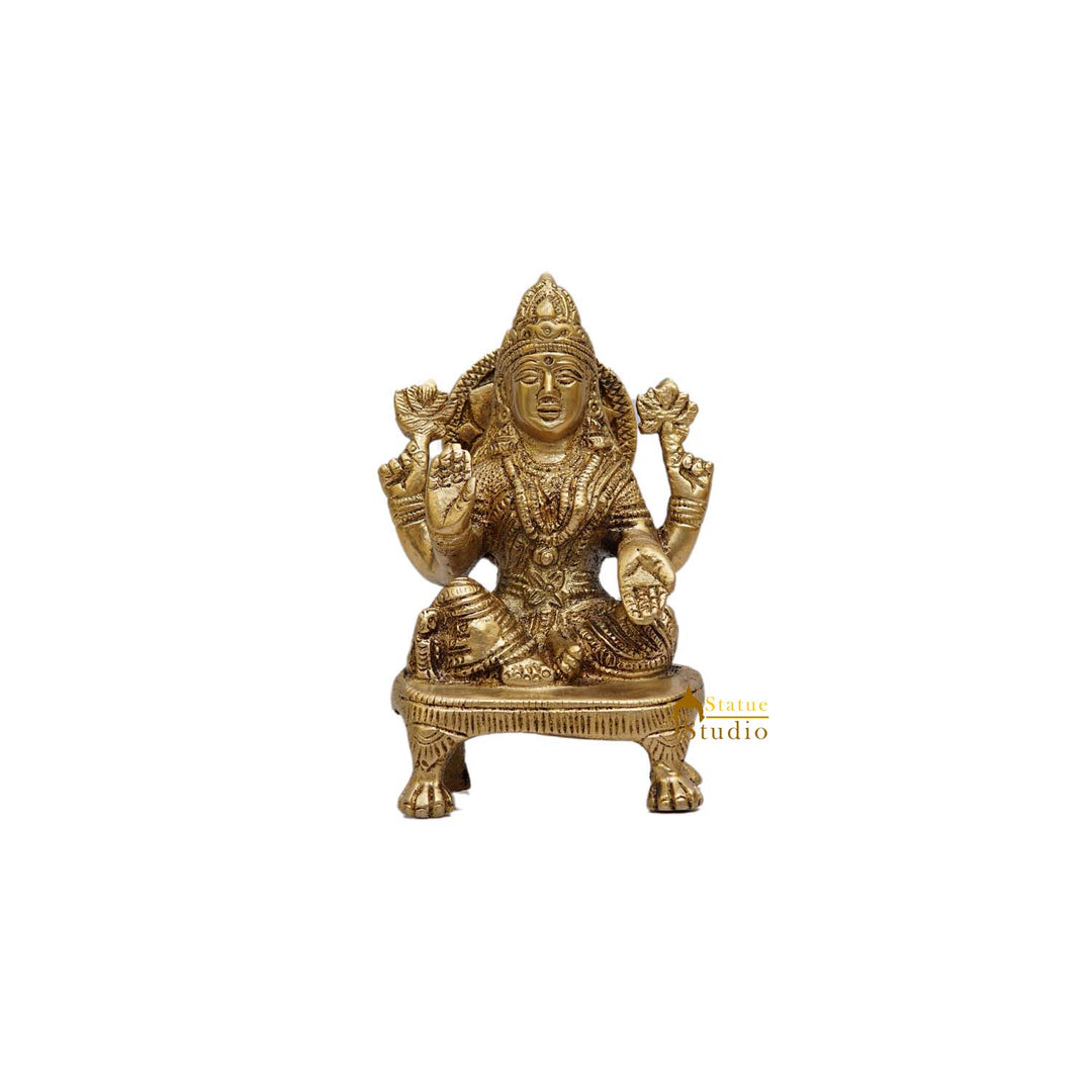 Lakshmi - This brass sculpture depicts Lakshmi, who is the Hindu goddess of wealth/money, prosperity, and fortune. Also she is the spouse of Lord Vishnu, who is believed to be the supreme savior of this universe. It is believed that worshipping goddess Lakshmi brings good luck, removes misery and poverty. Lakshmi is worshipped in Hinduism in homes and also at commercial establishments as the goddess of wealth for their success. The festival of Diwali in India sees special prayers in homes, commercial places and temples of goddess Lakshmi with Lord Ganesha. She also enjoys worship as the consort of Vishnu in many temples.