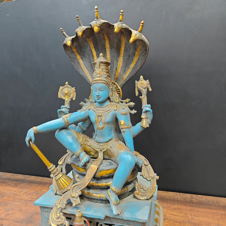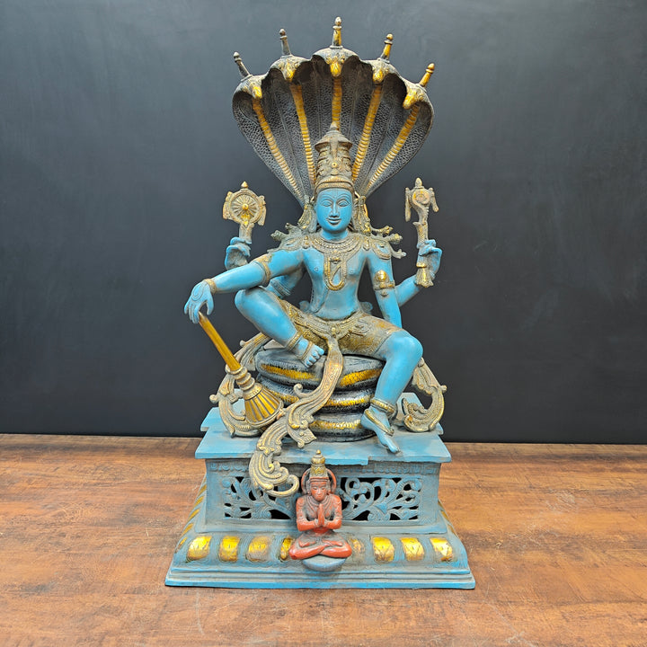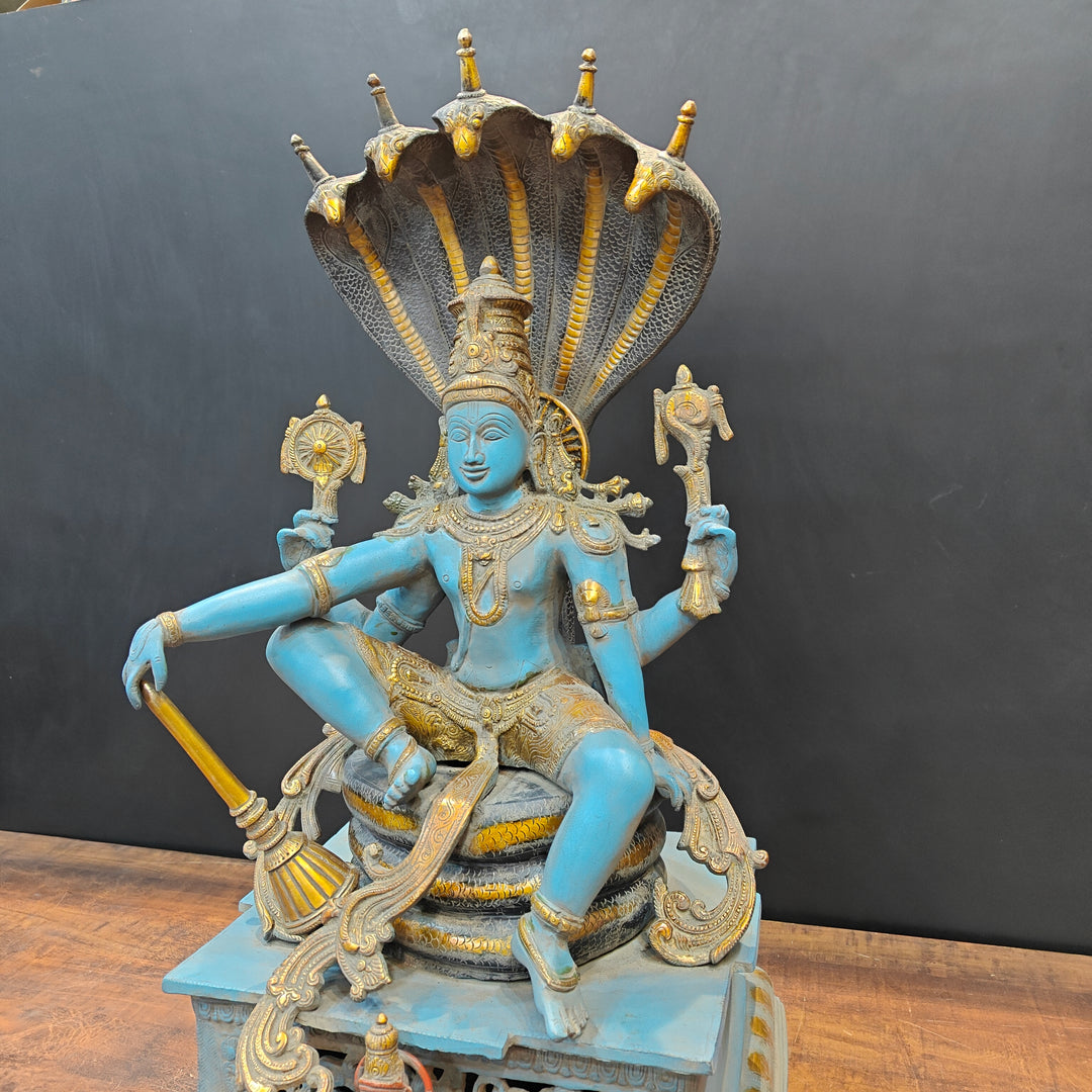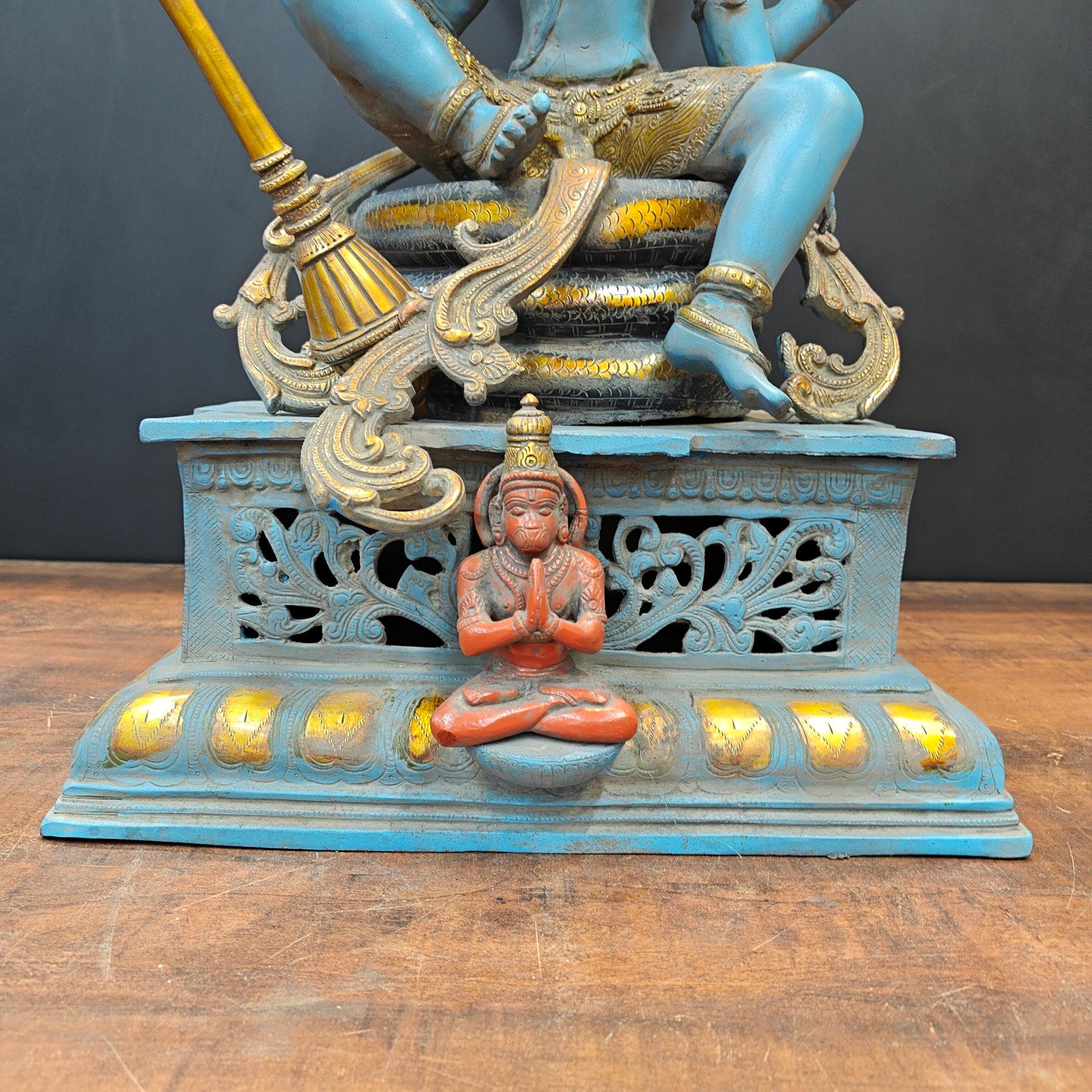 Lord Vishnu, also popular as Shri Hari or Narayana among his devotees, is the supreme god in Vaishnavism in Hindu religion. He is the part of Trimurti, Brahma-Vishnu-Mahesh and known as the preserver or the sustainer of the universe. Lord Vishnu is always shown in dark-blue or black colored skin, completely adorned with precious jewels.