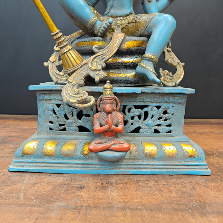 Lord Vishnu is seen sleeping on the coils of the serpent Adishesha floating in the ocean of milk known as Kshira Sagara along with his consort Goddess Lakshmi.