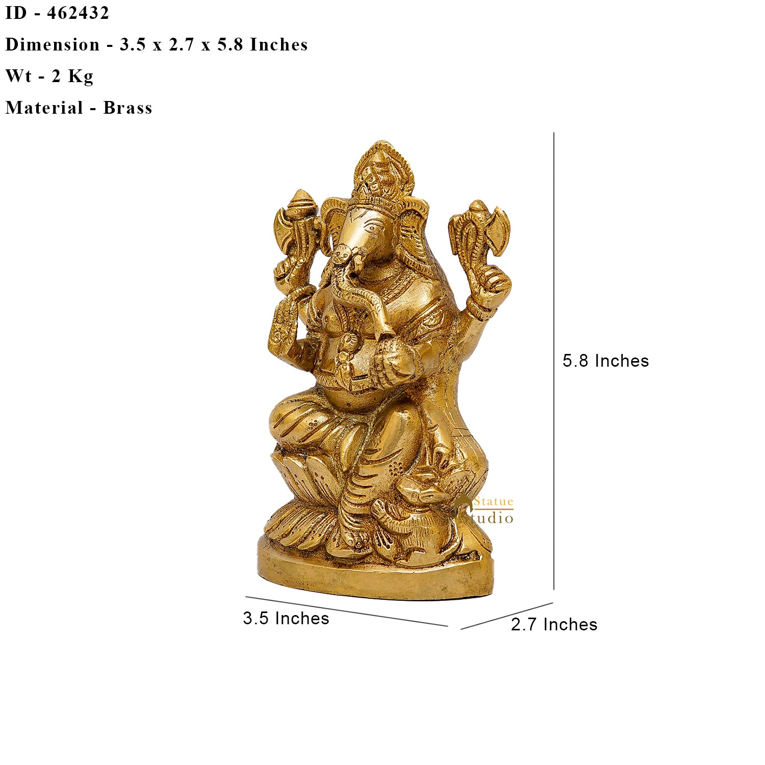 - Product Details : Product Code - 462432 || Width x Depth (Inches) - 3.5 x 2.5 Inches || Height (Inches) - 5.8 Inches || Weight (In Kg) - 2 Kg || Material - Brass || Made In India