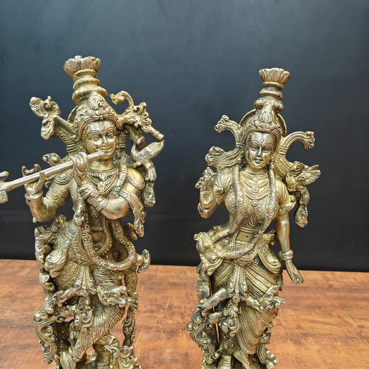 Gopi & Gopal - Radha is believed to be the incarnation of Goddess Laxmi - the Goddess of Wealth. Gopi (milkmaid) is a common name attributed to the girls/women who along with their cow herds were attracted to Lord Krishna during his young age because of his flute and mannerisms. Radha was one of those Gopi, believed to be the closest to Lord Krishna. It is believed that both were having eternal love for each other but never got married. Yet their love for each other was so great and iconic that today in every part of the world Lord Krishna is worshipped along with Radha in temples as a sign of true love, hence the name Gopi & Gopal for these brass sculptures.