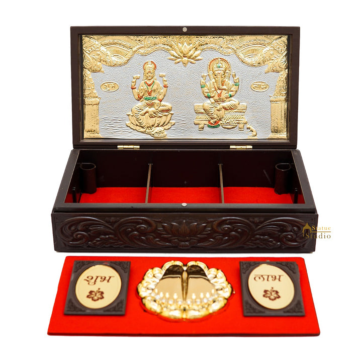 Ganesha Laxmi Wooden Charan Paduka Diwali Pooja Gift Decor Box