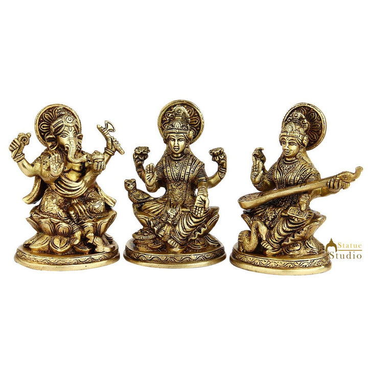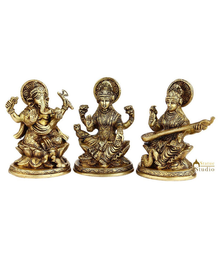 This is very special tri-deity statue set. The first from the left is Lord Ganesha, the remover of all the obstacles, hence rightly called ‘Vighnaharta’. On the extreme right side, the goddess of wisdom, knowledge and arts – Saraswati is placed with her ‘Veena’. Every student in India has seen her in their schools. In the middle is the Goddess of wealth and fortunes – Lakshmi. This limited edition brass sculpture set allows you to offer prayers and wish for all possible comforts in one go. Remember – No obstacles, all fine arts and all the fortunes, what else one can ask for! A must have for all homes.