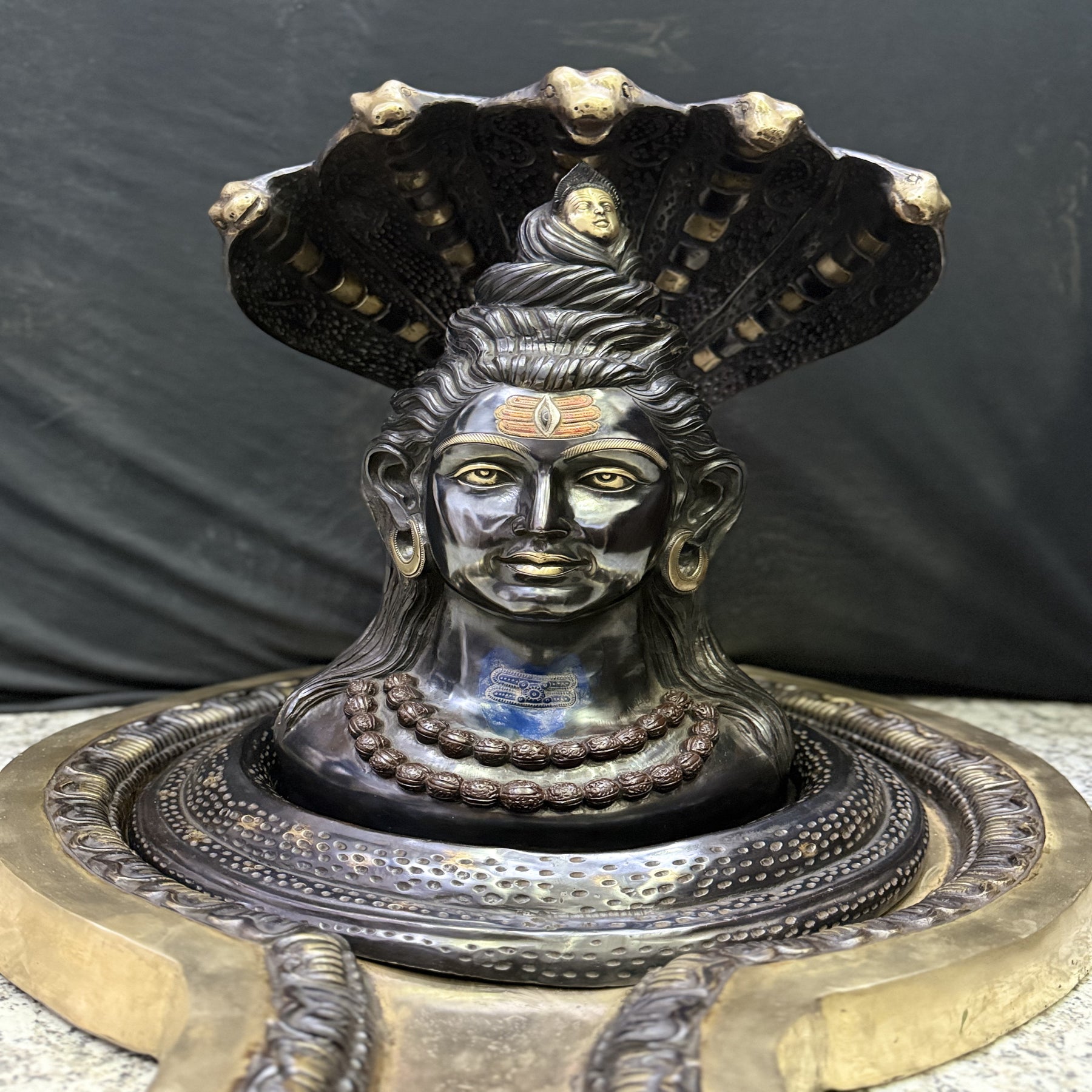 Brass Shiv Lingam Idol with Shiva Face and Vasuki Naag Black Patina Finish 35 Inch