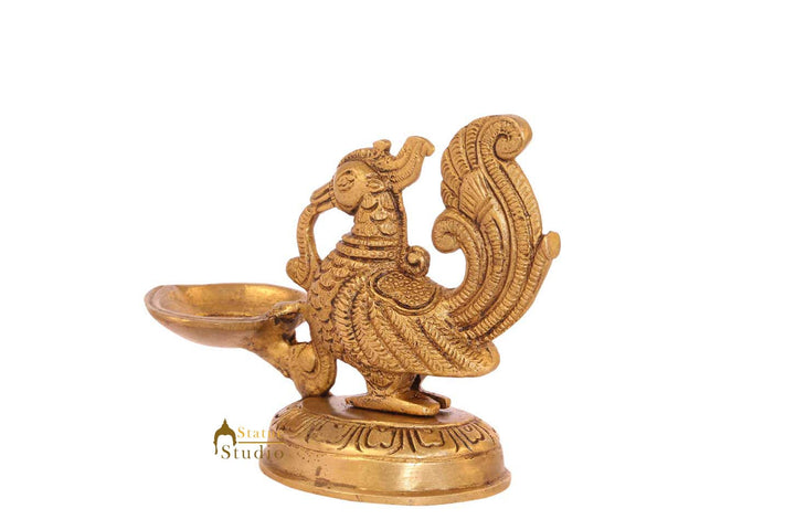 Small Peacock Diya - This brass sculpture depicts an oil lamp or Diya/Deepak in Hindi language. Diya/Deepak holds an important place as per Hindu mythology. As they are used in the temples all across globe, after being lit up to perform rites and worshipping the Gods and godesses and also symbolize light to drive away the darkness.