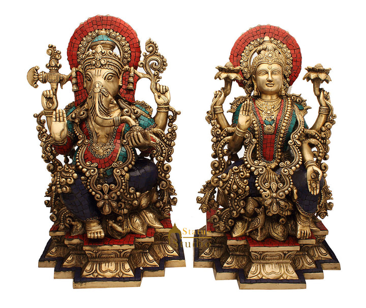 Chaturbhuj Shree Ganesha – The Hindi word ‘Chaturbhuj’ means the one who has four hands. In this posture Lord Ganesha is depicted with his four hands. The upper right hand has a ‘Pharsa’ or an axe symbolizing cutting attachment bonds. The lower right hand is raised with palm facing outwards away from the body with fingers flexed. This hand gesture is called ‘Abhayamudra’ that offers protection for all from all evils. The upper left hand is shown holding a conch, ‘Shankha’ in Hindi. The sound of the conch is considered pious in Hinduism and represents the call to come and pray. The lower left hand holds a special sweet called ‘Modak or Laddoo’. It is believed that it is the favorite sweet of Lord Ganesha, also it represents the sweet result of prayers one offers and the sweetest things of all - The liberation or ‘Moksha’. Lakshmi - Lakshmi is the Hindu goddess of wealth/money, prosperity, and fortune. Also she is the spouse of Lord Vishnu, who is believed to be the supreme savior of this universe. It is believed that worshipping goddess Lakshami brings good luck, removes misery and poverty. Lakshmi is worshipped in Hinduism in homes and also at commercial establishments as the goddess of wealth for their success. The festival of Diwali in India sees special prayers in homes, commercial places and temples of goddess Lakshmi with Lord Ganesha. She also enjoys worship as the consort of Vishnu in many temples.