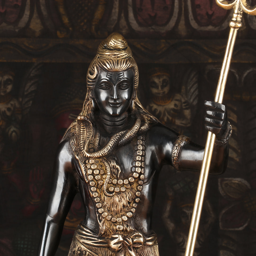 Shiva’s unique appearance also catches the attention of devotees which carries the moon at the top from where River Ganga is flowing from his matted hair. He is the God with Third Eye on his forehead which is the inward vision capable of burning anything when disturbed. Moreover, with serpent and skulls around the neck Shiva imparts a chancy look. Along with this, Shiva holds a Damru and a Trident in the hand.