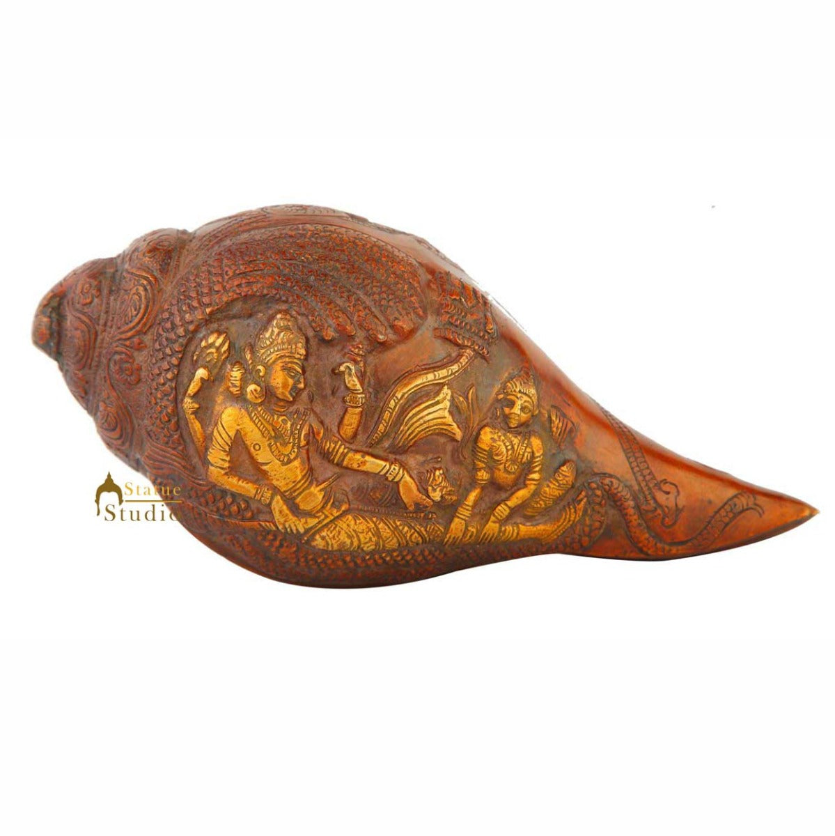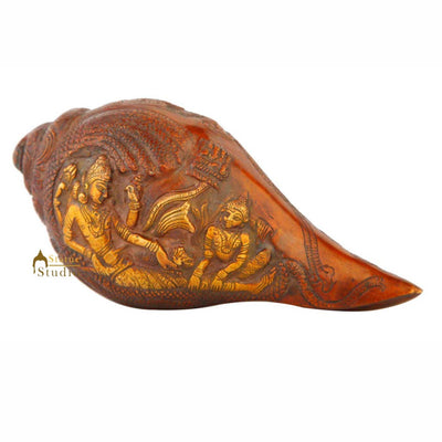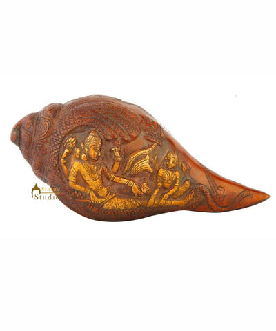 The Conch or the Shankh in Hindi, is a sacred Hindu object whose sound is considered pious/good at the start of any religious rituals. Lord Ganesha is worshipped first of all in all the dieties. Hence the conch and the Lord ganesha together mark the begining of a new phase, time, or anything of great significance in once life. Our artist understand the religious and devotional aspects of Hinduism and are creative enough to carve a sculpture that mixes and unites the traditions with modernity.