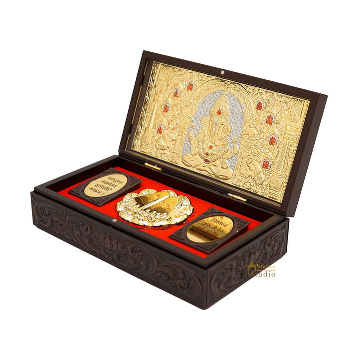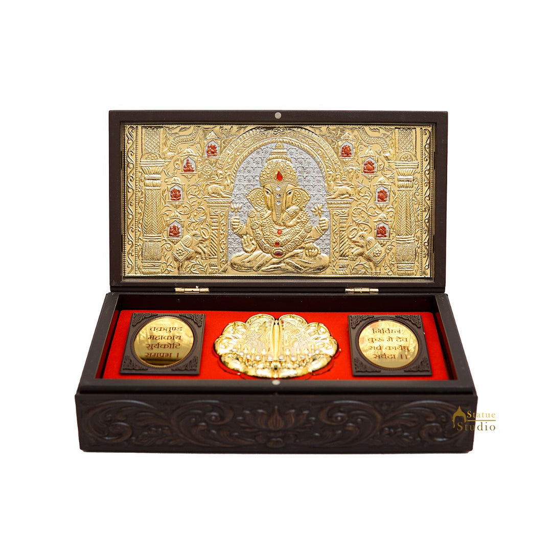 Ganesha Laxmi Wooden Charan Paduka Diwali Pooja Gift Decor Box