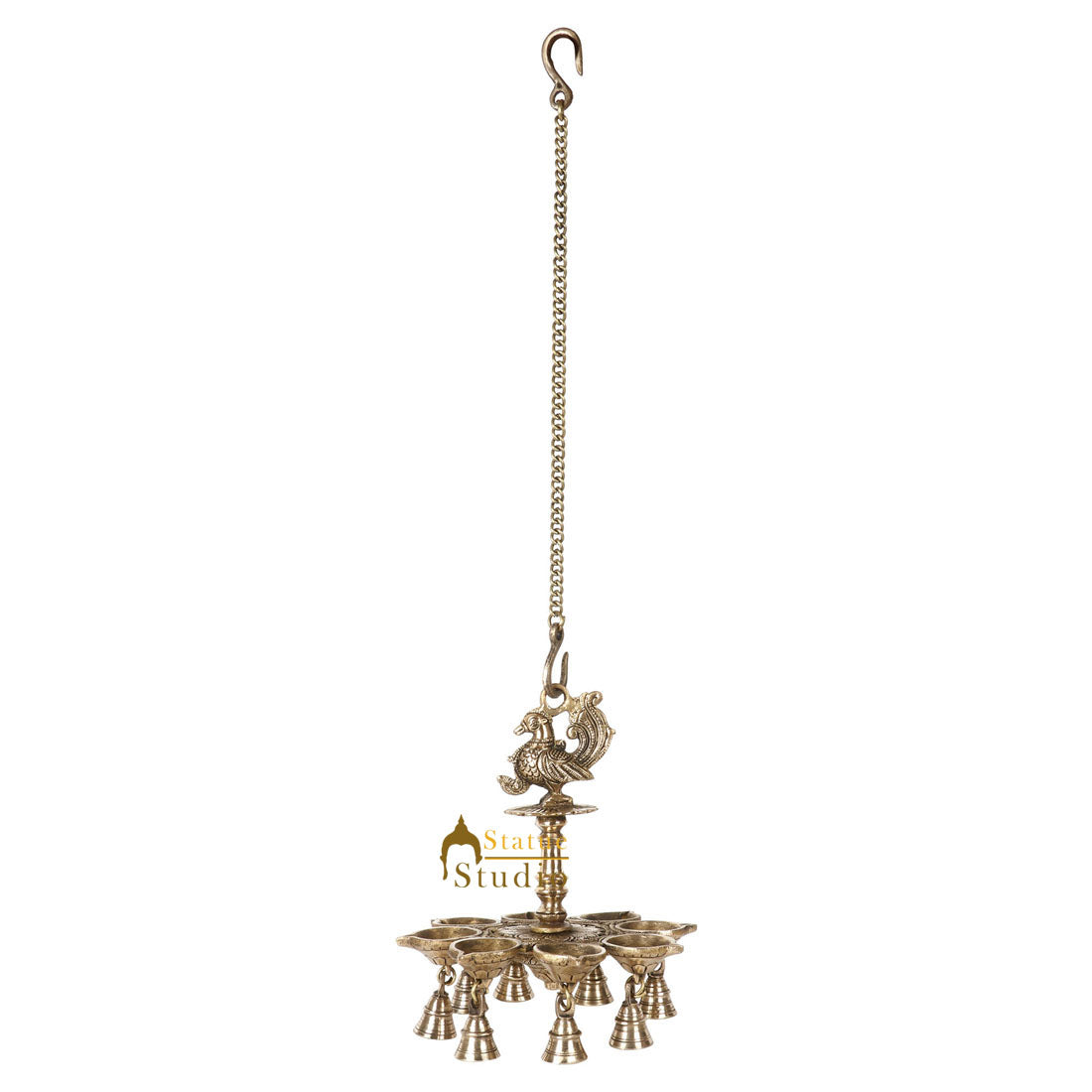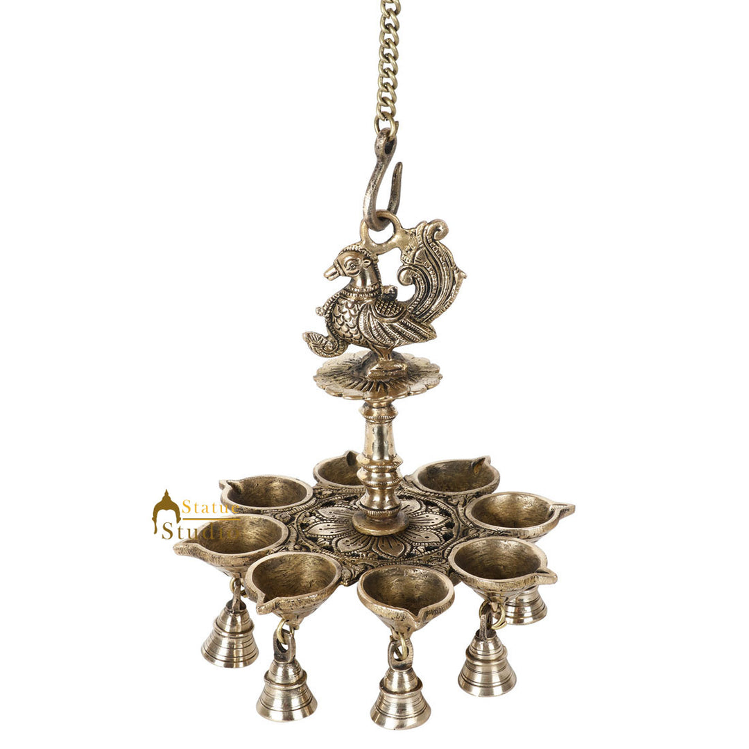 Oil Lamp - This brass sculpture depicts a hanging group of oil lamps or Diya/Deepak in Hindi language. Diya/Deepak holds an important place as per Hindu mythology. As they are used in the temples all across globe, after being lit up to perform rites and worshipping the Gods and godesses and also symbolize light to drive away the darkness. This group of oil lamps comes with a string/chain so that you hang it wherever you like as a showpiece or as burning bright oil lamps.