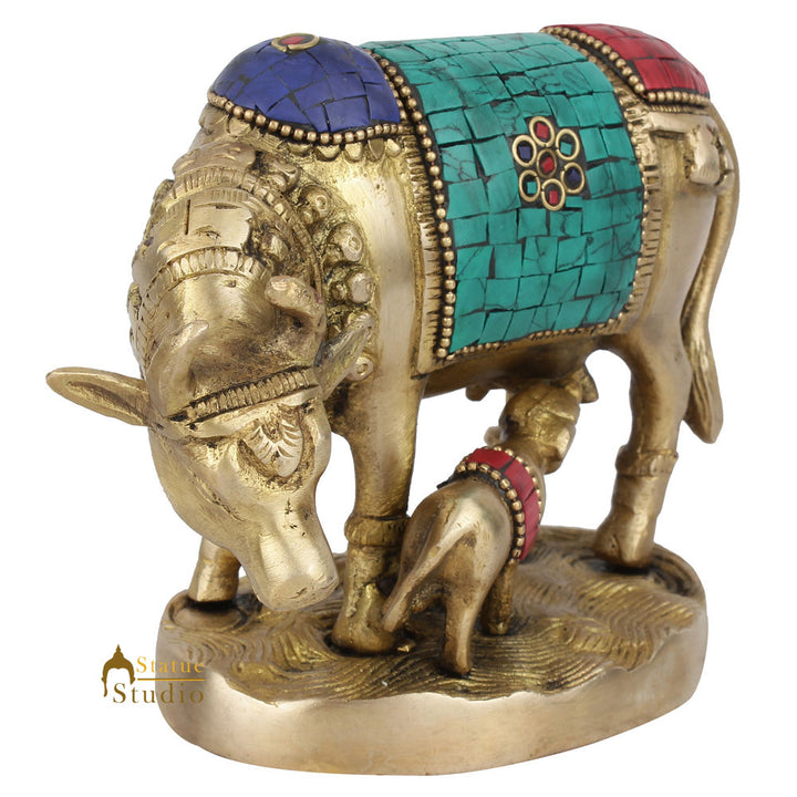 In India a cow is believed to be the holiest animal and is worshipped by Hindus and others. It is considered pious and is well fed, bred and served. Cows are regarded as a mother and hence called 'Gau-Mata' which literally means 'Cow Mother'. This brass statue depicts the soul of a nation called India, a mother feeding her child, a calf. It cannot get more emotional and compassionate than this. It shows and strengthens the feeling of love, care and motherhood. People place such statues and pictures near by 'would-be moms' to enhance their feelings of motherhood. No explanations needed, sometime feelings get the job done.