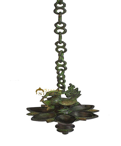 Oil Lamp - This brass sculpture depicts a hanging group of oil lamps or Diya/Deepak in Hindi language. Diya/Deepak holds an important place as per Hindu mythology. As they are used in the temples all across globe, after being lit up to perform rites and worshipping the Gods and godesses and also symbolize light to drive away the darkness. This group of oil lamps comes with a string/chain so that you hang it wherever you like as a showpiece or as burning bright oil lamps.